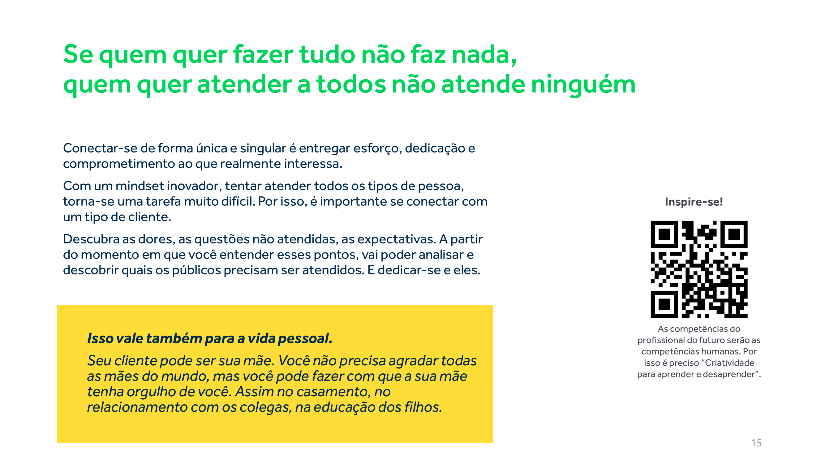 – Conecte-se de forma única e singular: Quem quer resolver tudo, não resolve nada